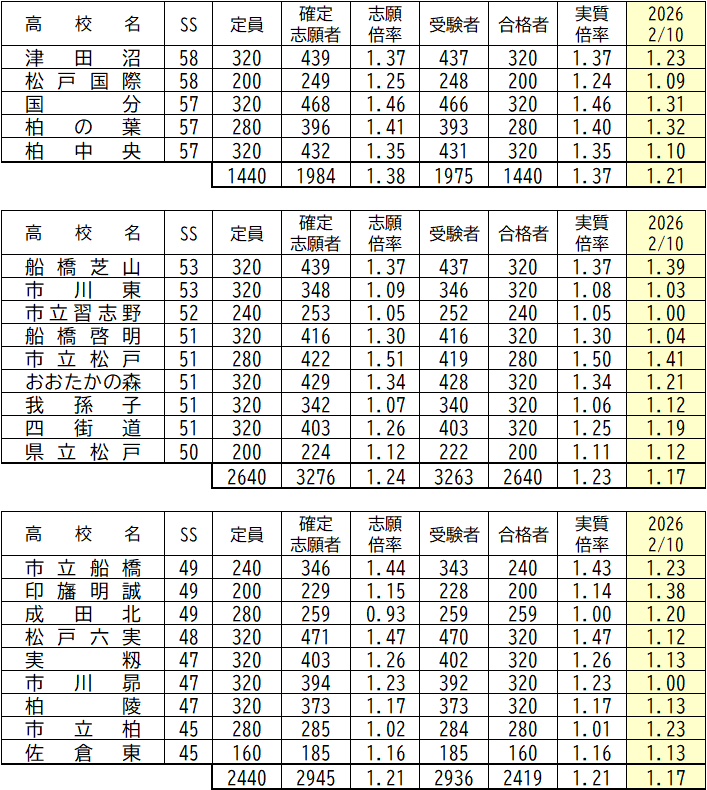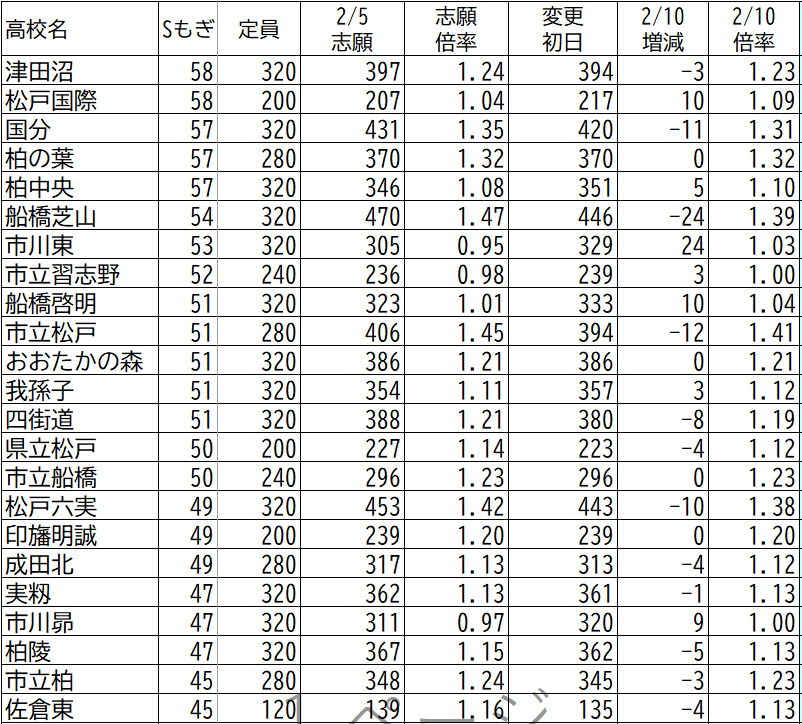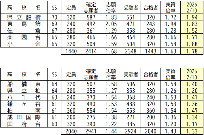 船橋は薬園台や船橋東へ、東葛飾は小金にシフトしたのだろうか。